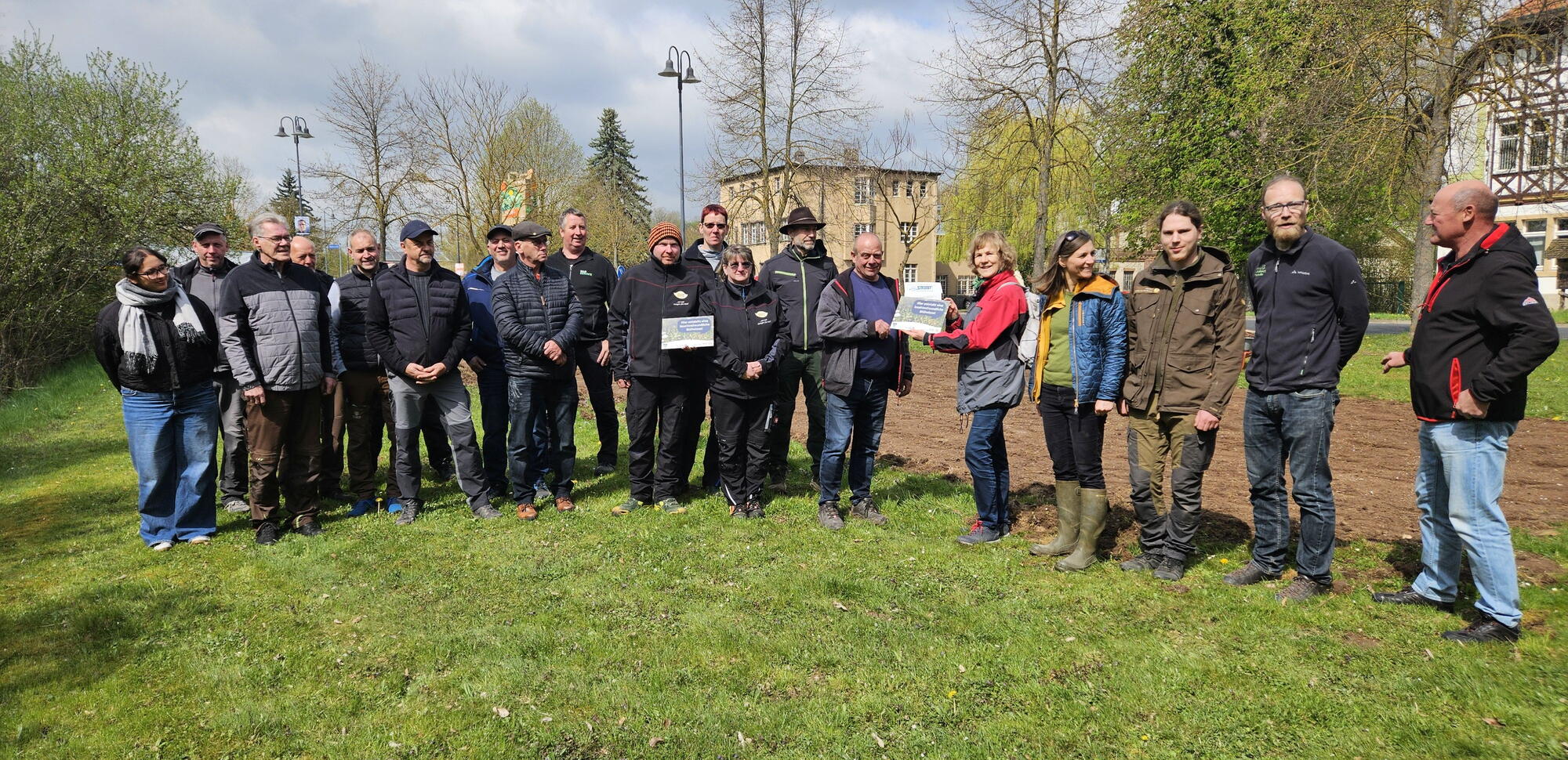 Creuzburg. Am Dienstag, den 21. April 2026 begrüßte Ortsteilbürgermeister der Stadt Creuzburg Ronny Schwanz 20 Bauhof-Mitarbeitende der umliegenden Kommunen und der Naturparkverwaltung im Klostergarten, die sich über praxisorientierte Maßnahmen bei der Umstellung auf eine nachhaltige und insektenfreundliche Grünflächenbewirtschaftung informieren wollten.